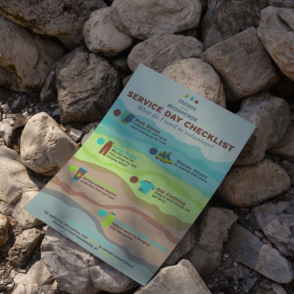 This is an exploration of how to attract more visitors of the Friends of the Wissahickon park, located in Philadelphia, PA, to volunteer for service days. Taking inspiration from their existing brand identity I created iconography to make a poster design.