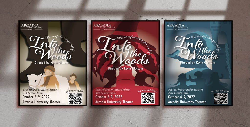 A series of poster designs for Arcadia University Theater Program’s production of Into the Woods. Each poster in the series focuses on different characters in the play.