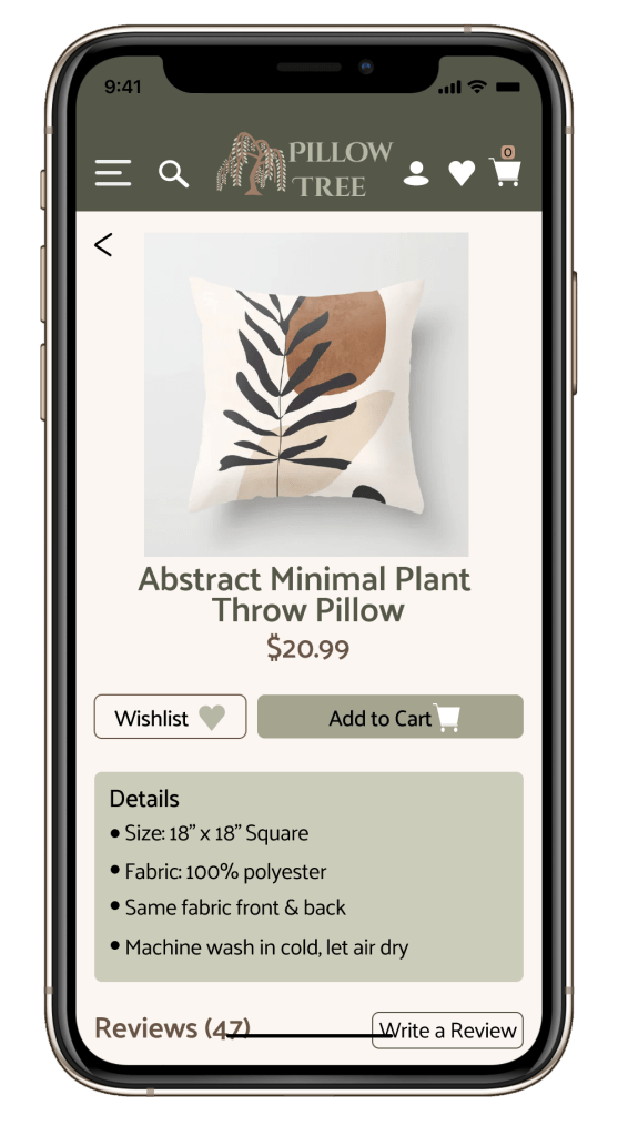 Pillow Tree is an e-commerce store that sell pillows of various styles and material. The prototype can be viewed and explored as one would the actual app.