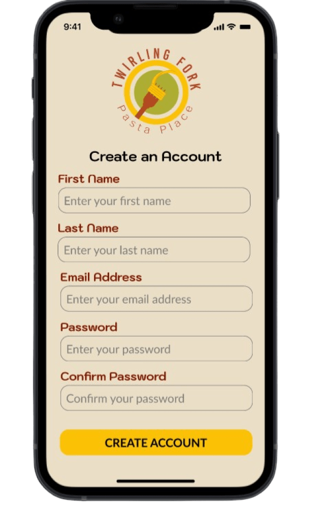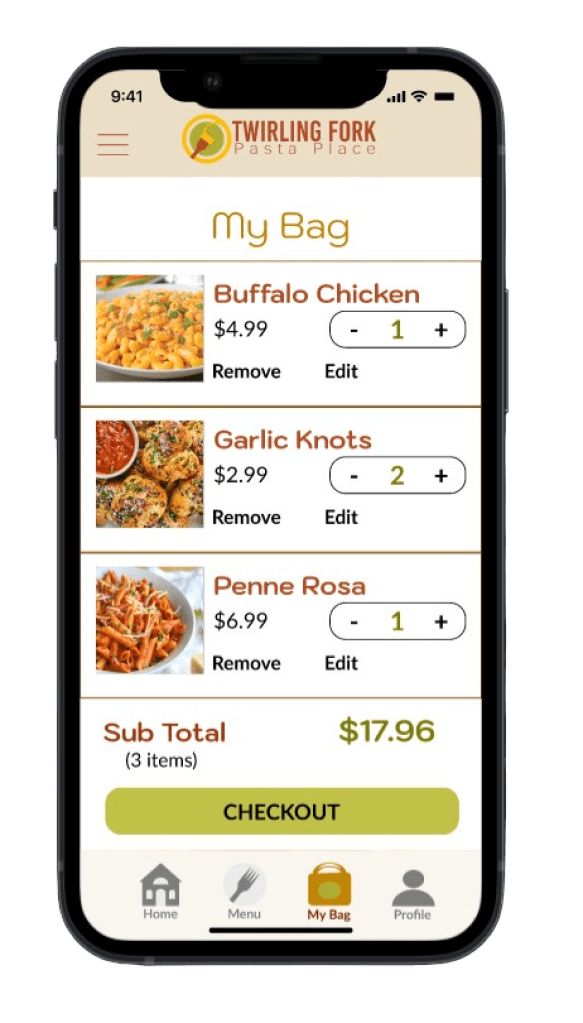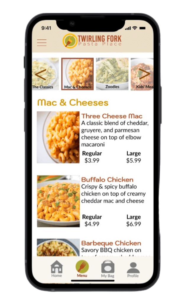Twirling Fork Pasta Place would have an app to make online ordering much easier.